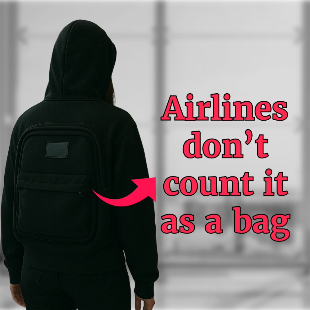 The Hoodie Backpack is your smart travel hack — sleek, comfy, and built to carry everything you need. From breezing through airport gates ✈️ to dancing hands-free at festivals 🎶, this hoodie keeps you light, free, and ready to go.